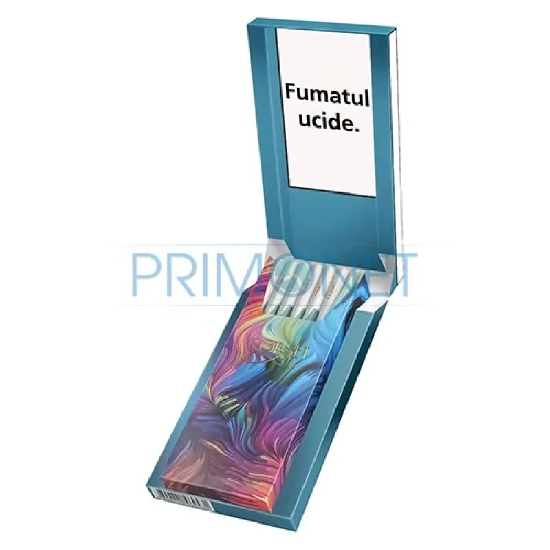 Interzisa vanzarea catre minori. Fumatul dauneaza grav sanatatii dumneavoastra si a celor din jur. Fumatul in timpul sarcinii dauneaza copilului dumneavoastra. Protejati copiii: nu-i lasati sa respire fumul dumneavoastra. Fumatul da dependenta, nu incepeti sa fumati! Oprirea fumatului scade riscul de imbolnaviri cardiace sau pulmonare fatale. Fumatul poate provoca o moarte lenta si dureroasa.